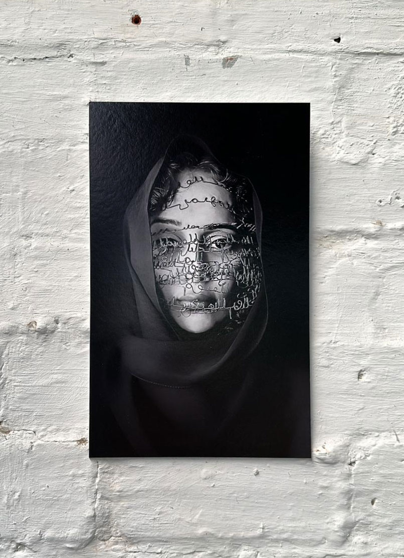تحمل الفنانة هوية معقدة: ذاكرة عابرة للأجيال، تناقضات ثقافية، التنقل في سياق إسلاموفوبي. تلتقط هذه الصور الذاتية تلك اللحظة الدقيقة في أواخر 2022: من كانت، كيف سكنت جسدها، تاريخها، تناقضاتها. يمرّ النظر عبر الأسلاك الشائكة. تظل العيون مرئية، مكثفة، حاضرة. الوجه مغطى لكنه غير مطفأ. لقطة تجربة الحياة في تلك اللحظة.